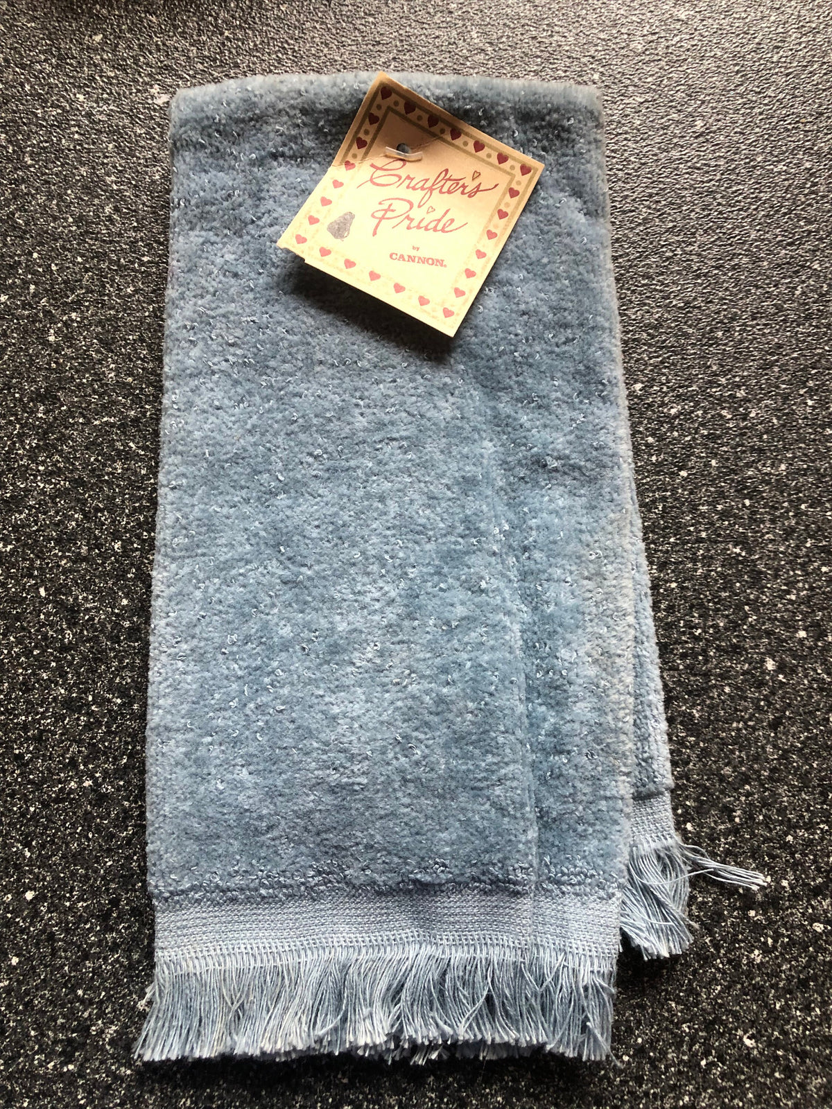 Crafters Pride by Cannon Velour Guest Towel Finger Tip Towel with Break Away Canvas. Choose your own pattern. After stitching wet the canvas and remove leaving only your stitching on the towel. Please note this is from a craft store that went out of business years ago. The break away canvas is discolored with age. But as you will remove it when you are done it really does not matter. Please visit my store often as I will be listing many items from this old craft store. Many are no longer offered to crafters today.