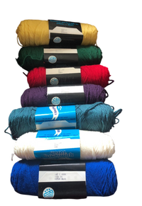 Brunswick Wool Yarn Forest Green, Scarlet, Dark Copen Blue, Wisteria, Teal HEA, Med Yellow, Ecru