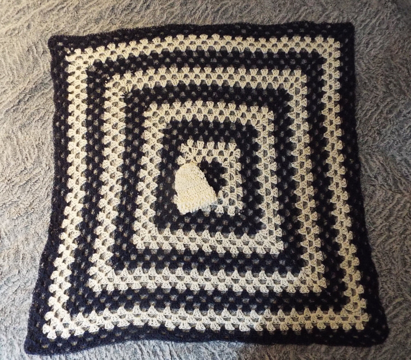 Blue and Off White Baby Granny Square Blanket. This is 30" square with a delicate Baby hat that measures 4"x 4" with the brim turned up. This material does stretch. It has a delicate lacy look for a newborn or preemie. All handmade items are made by a disabled senior with love. Blankets are all made stretchy. For the life of me I do not know how anyone photographs these perfectly straight. As a craft lover I have collected patterns, kits and materials. Over time fellow croft lovers have passed on to me their collections. Sadly, I realize that the current collection could not possibly be completed in my life time. This will be to your advantage. Many items are now still in original packaging. I will do my very best to accurately describe these items. If there is writing or damage to a package, I will try to note it for you and include photos. For best description all of these items will be referred to as estate items. As they have been acquired over time from various homes, I cannot make any statement on pets or smoke.