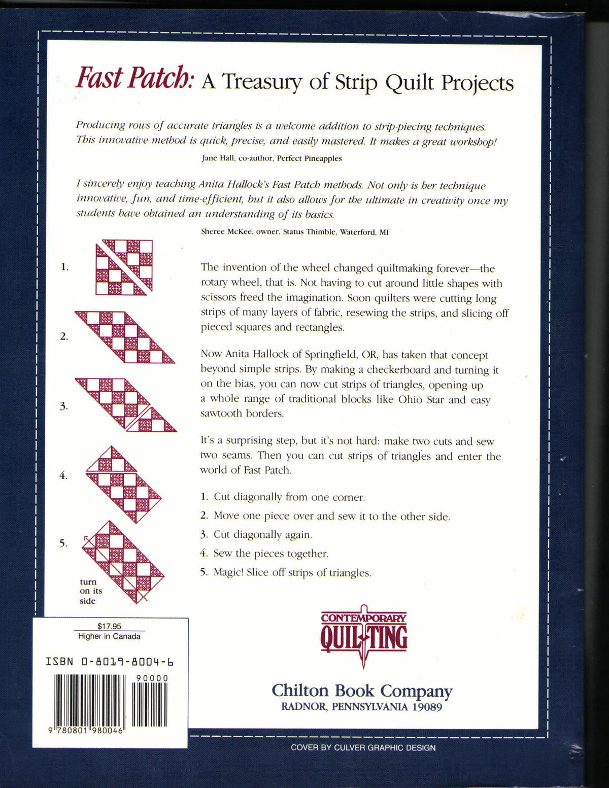 Fast Patch A Treasury Of Strip Quilt Projects Soft Cover Book By Anita Hallock This was sitting on the store shelf for a long time. It looks like it was looked at a few times. Front cover shows minor damage to edges.