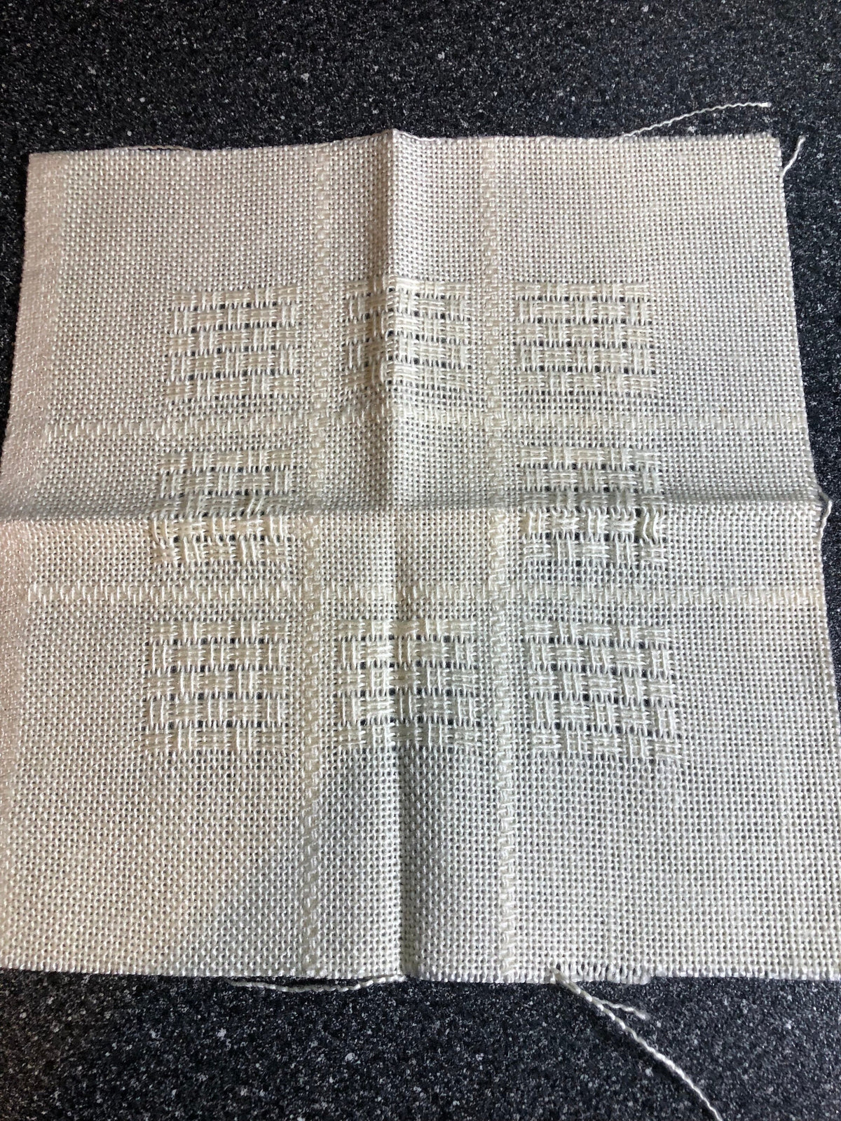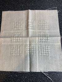 Monza Square Zweigart Fabrics Pattern Square # 7094 This pattern square is approximately 11” x 11” and the stitch area in the center is approximately 2” x 2” in diameter. Please see the photos. This has a pattern of squares inside squares. .