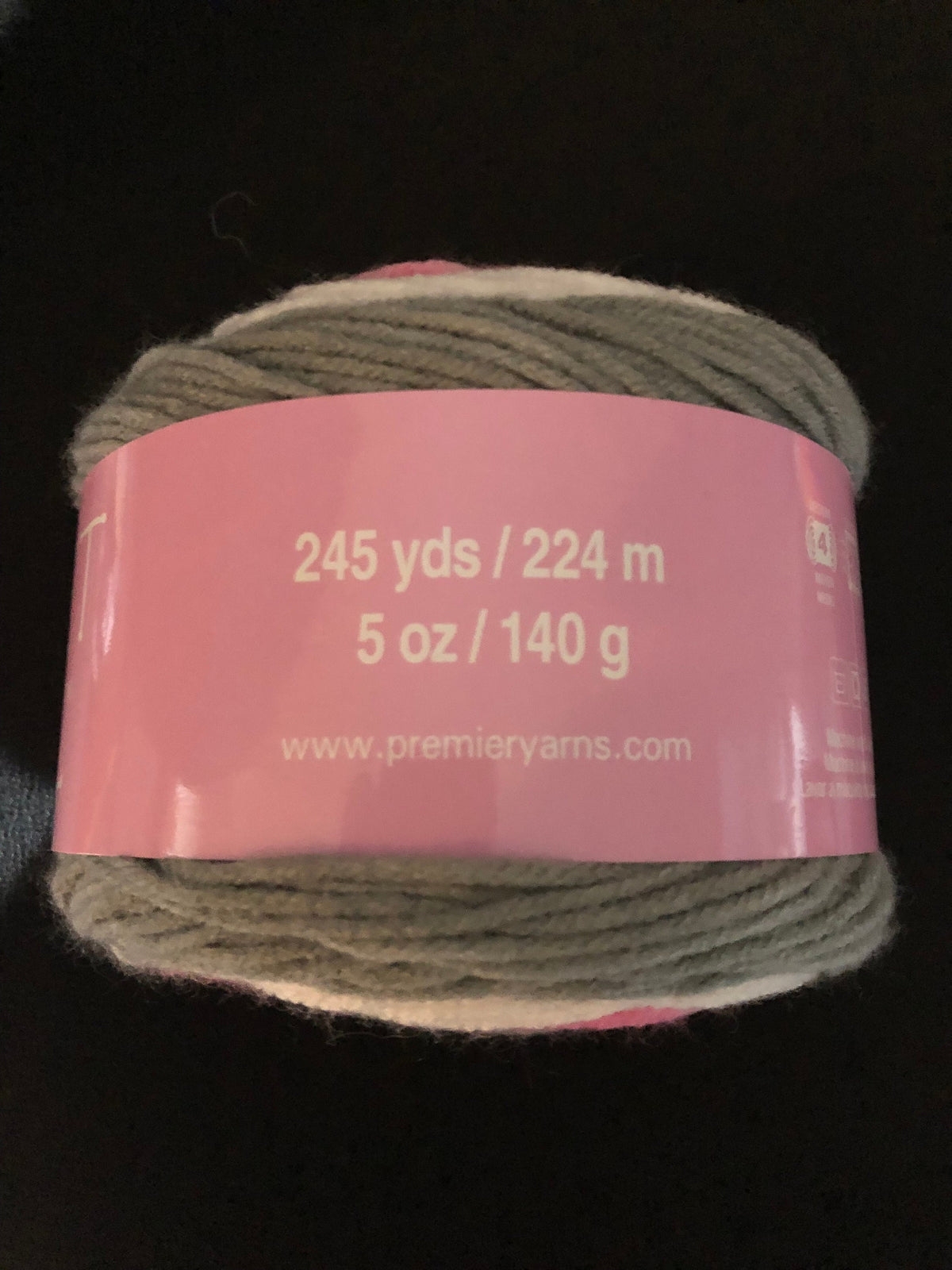 Sweet Roll Combines 3 colors in each ball. The yarn is designed to create wide stripes in a regular repeat. Color: Bubble Pop 4-Medium Weight Yarn 100% Acrylic Machine Wash Imported 5oz/140g/245 yards per cake Crochet gage: Size !-9 (5.5) hook: 14 sc and 16 rows = 4" (10.2cm) Knitting gauge in st size 9 (5.5mm) needles: 17 sts and 23 rows = 4"(10.2cm) This is new yarn that Originally sold for $6.99 Priced per skein.