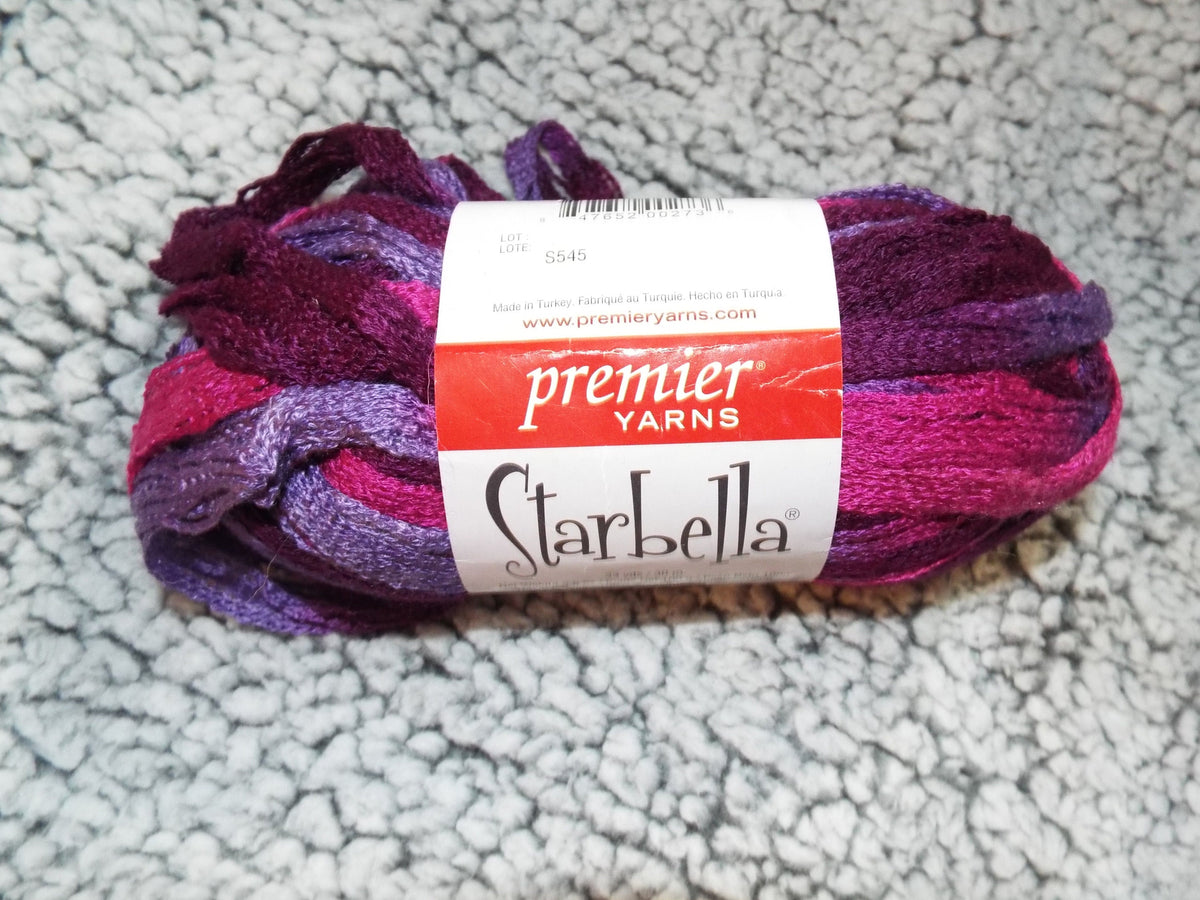 Staribella Premier Ribbon Yarn This skein contains 33 Yards of Ribbon Yarn Color: Plum Preserves (Purple / Pink) 3.5oz 100% Acrylic