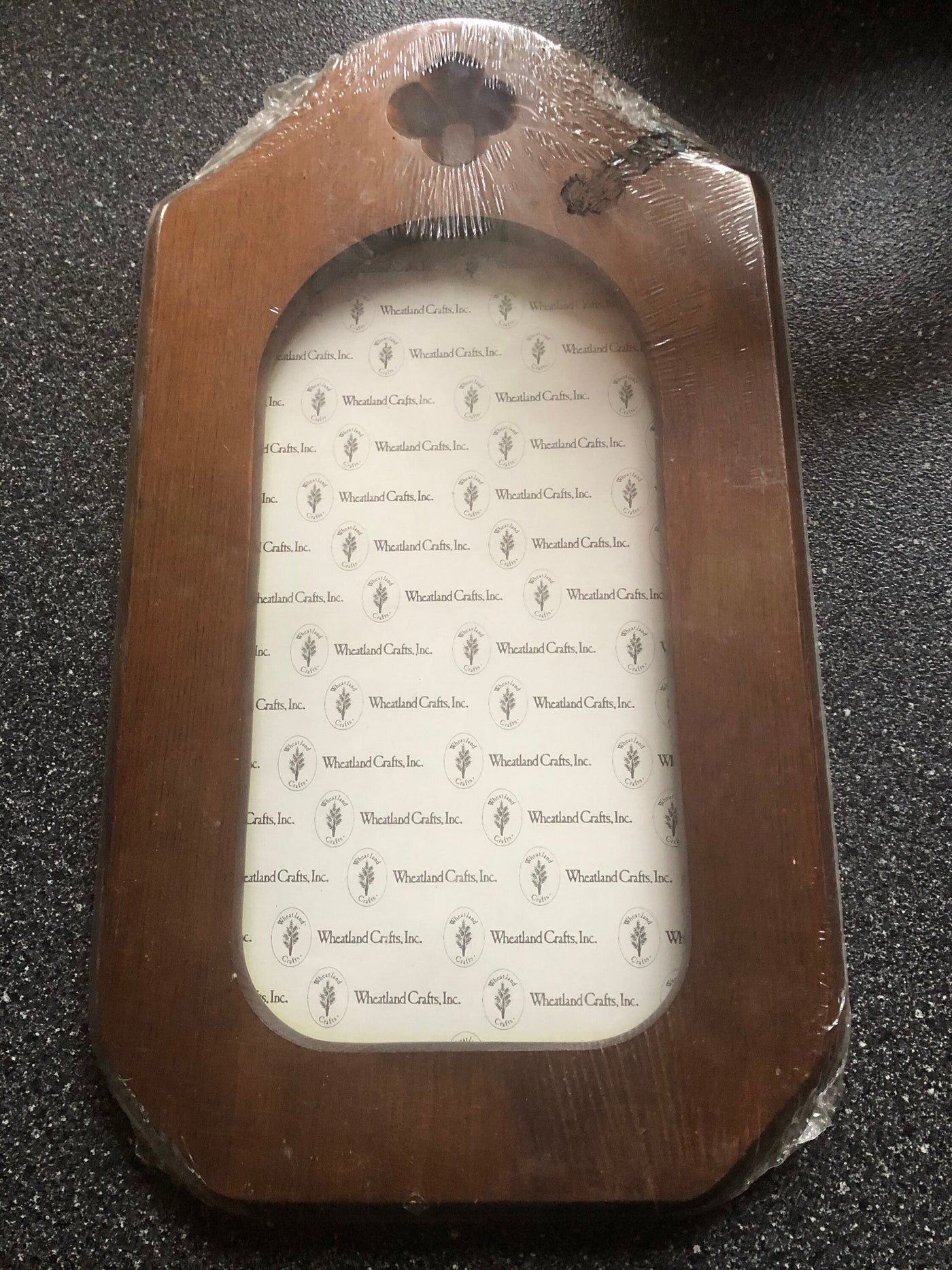 Wheatland Crafts Inc Wooden Craft Frame. Available in tow sizes: A - Exterior 17 x 9 1/2 inches Inside area 11 x 5 1/2 inches. B - Exterior 20 1/2 x 11 inches. Inside 13 x 6 1/4 inches. These are from a craft store that closed in the the 1980’s. Please visit my store often for more hard to find vintage items.