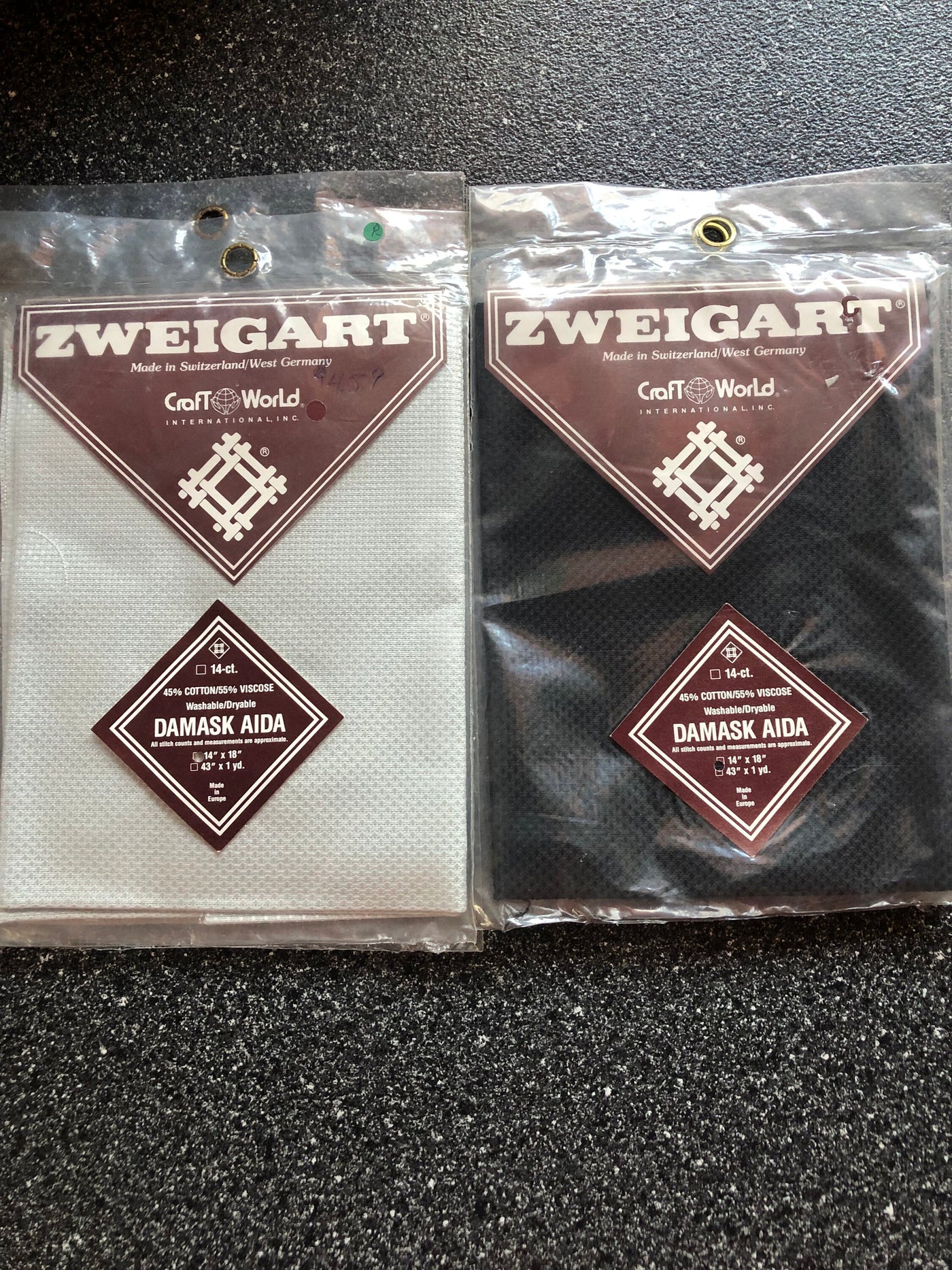 Zweigart Damask Aida 14 Count Cross Stitch Fabric Made in Switzerland/West Germany Craft World international, Inc. 44% cotton/55% viscose Washable/dryable all stitch, count, and measurements are approximate. size 13 1/2“ x 18“ made in Europe Founded in 1877 Zweigart enjoys a singular distinction the world over of being the undisputed leader in the needlework industry. combining the finest “old World“ craftsmanship with modern technology, Zweigart has become known for providing needleworkers with the finest quality, even with fabrics and canvas for over 110 years. always innovative, while striving for even higher quality, they have been able to design and manufacture, fancy patterns, embroidery fabrics, as well as plain fabrics and canvases to meet the demands of the industry. this item is new for the craft store that went out of business in the late 80s early 90s.